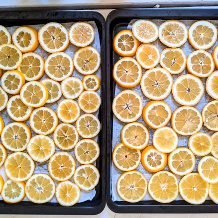 To freeze lemons in slices you will want a cooking sheet and wax or parchment paper to freeze the slices on before placing them in a container or bag. If you skip this step they will freeze together and be very difficult to take apart for separate use.